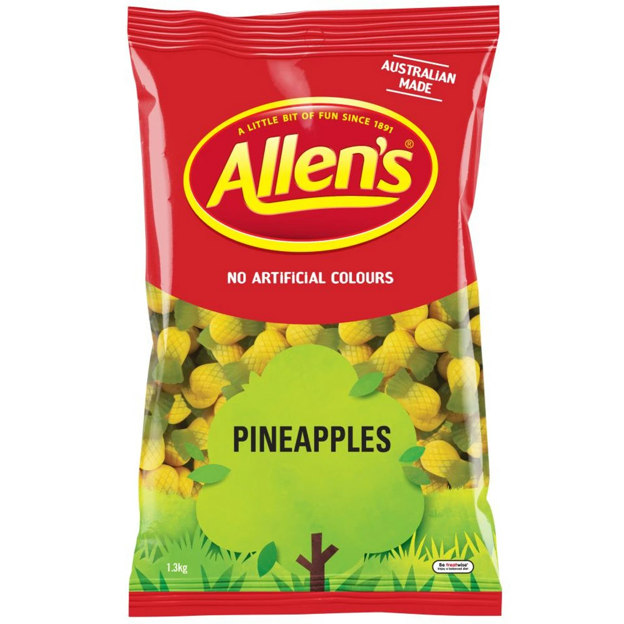 Allens 6 x 1.3kg bulk box of pineapples. Made in Australia. Yellow and green pineapples.