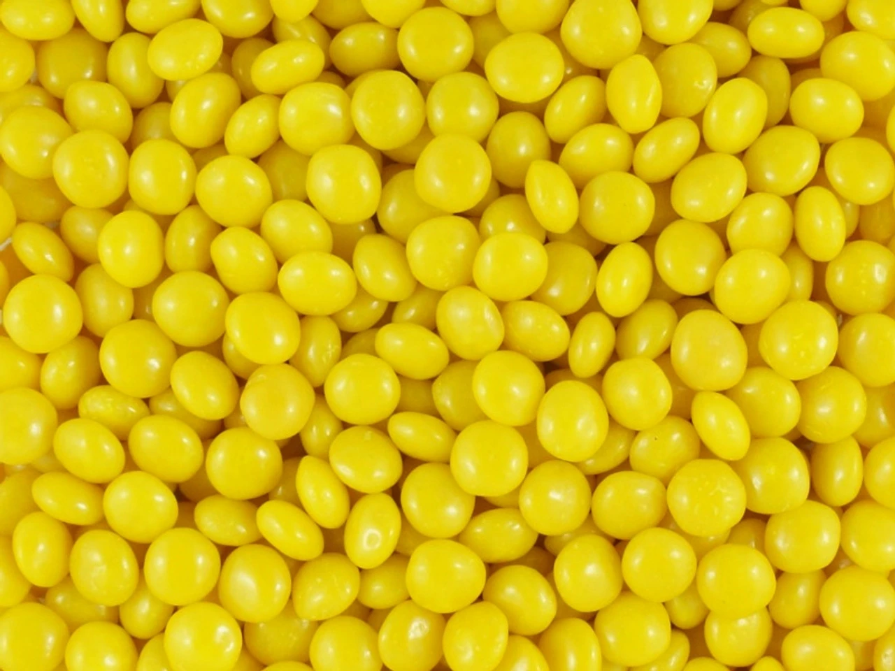 Candy Chews yellow lemon flavoured skittle like lolly. A 1kg bag of chewy sweet treats diameter approx. 1.25 cm. Ideal for parties, buffet or weddings.
