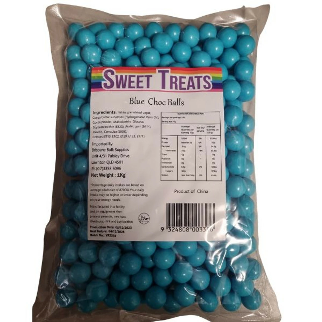 Blue Choc Balls are candy coated chocolate balls 1kg. Great for parties, weddings, lolly buffets and colour themes. Like jaffas.
