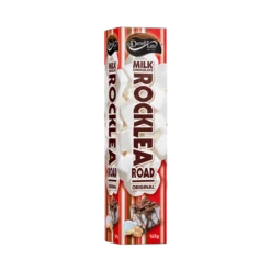Darrell Lea famous Rocklea Road® with fluffy marshmallow, peanuts & coconut in a 145g smooth milk chocolate bar.