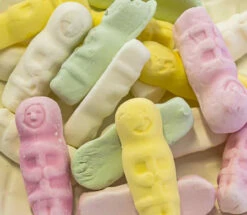 Emos Explorers ( Eskimo ) 1kg Rainbow are a marshmallow type confectionary in the shape of Eskimos coming in four different colours. 1kg bag. Traditionally Emos (were Eskimos) lollies or fruit puffs are used to make the New Zealand Lolly Cake.