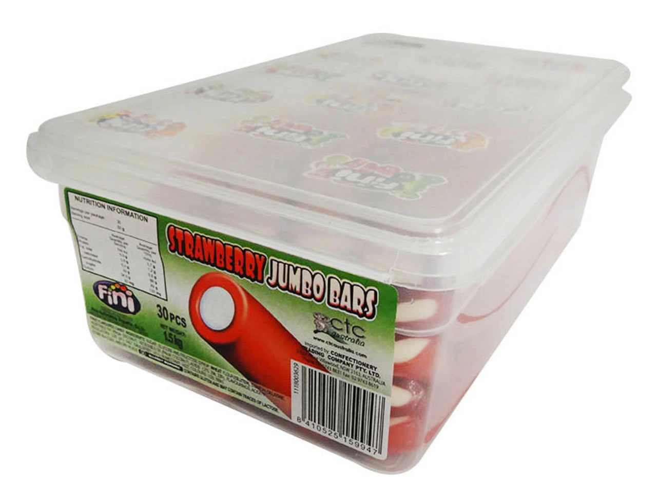 Fini Jumbo Strawberry Bars 30pc. Extra large Strawberry Jumbo bars 5x the normal size. Smooth strawberry flavoured coating with a delicious soft yoghurt style filling.