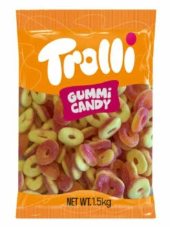 Super Gummi Unicorn. A super-sized, tutti frutti gummy candy, in the shape of unicorn head. 150g individually wrapped unicorns per box. Approx. 11 cm.