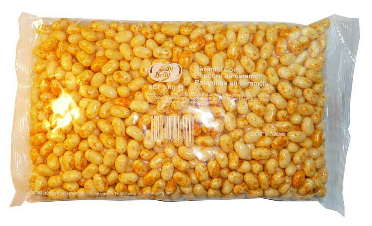 Jelly Belly Caramel Corn. Mini jelly beans with a fresh and fruity flavour. Ideal for parties and weddings. 1 kg bulk buy.
