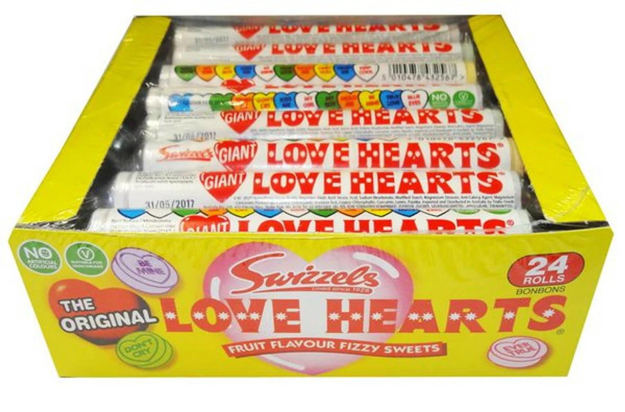 These small round fruit flavoured fizzy lollies with messages inside a Heart. Ideal for weddings, engagement parties, buffets. British made sweets packed in tubes of 25 individual lollies. 24 Tubes per box. Approx. 600 Kind Love Conversation Hearts. Each heart approx 20mm diameter.