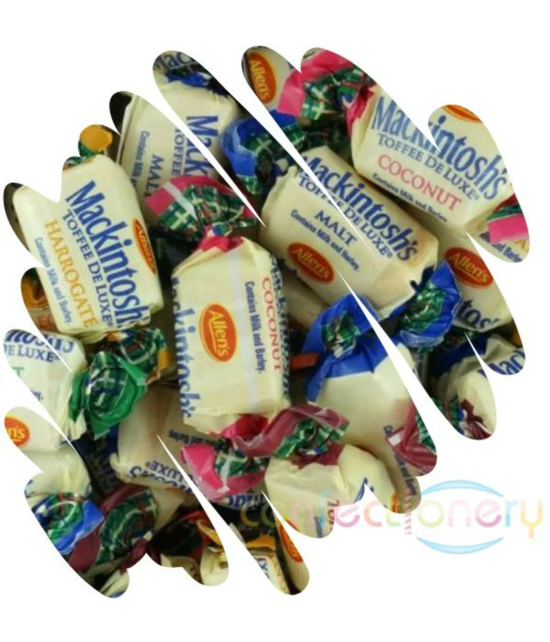 A deluxe assortment of great flavours; Mint, Coconut, Malt, Egg and Cream, Toffee, and Harrogate.
