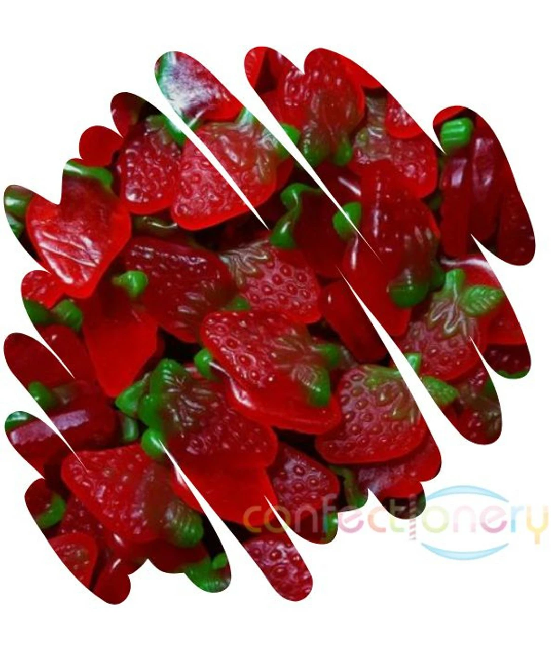 Mayceys Sour Strawberries soft sour lolly. Each box contains roughly 265 loose Sour Strawberries and the box weighs 1.7kg. Made in New Zealand by Mayceys Confectionery.