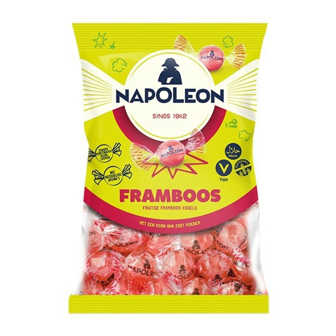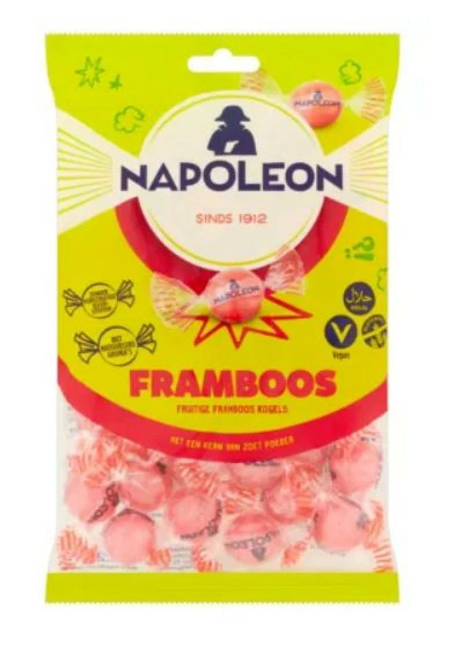 Napoleon Framboos Frambozen Kogels Dutch Raspberry Balls 225g bag. Hard raspberry candy. Product of Netherlands.