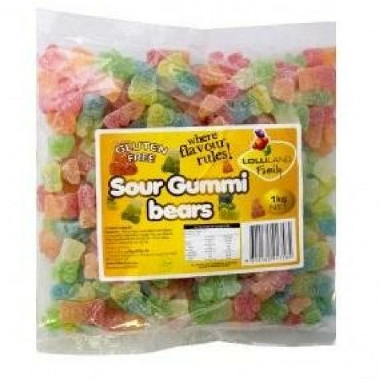Sour Bears a colourful selection of soft jelly bear shaped sweets. Gluten free. A 1 kg bag. Ideal for parties, buffets and events.