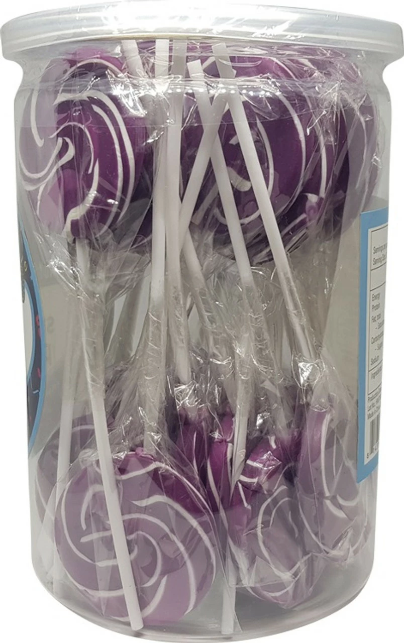 Purple & white swirly pops have 24 swirl lollipops perfect for baby shower, parties, candy buffets. Each lollipop weighs approx. 12g. and measures approx. :- swirly pop – 4.5cm diameter :- with stick – 13.5cm in total length.