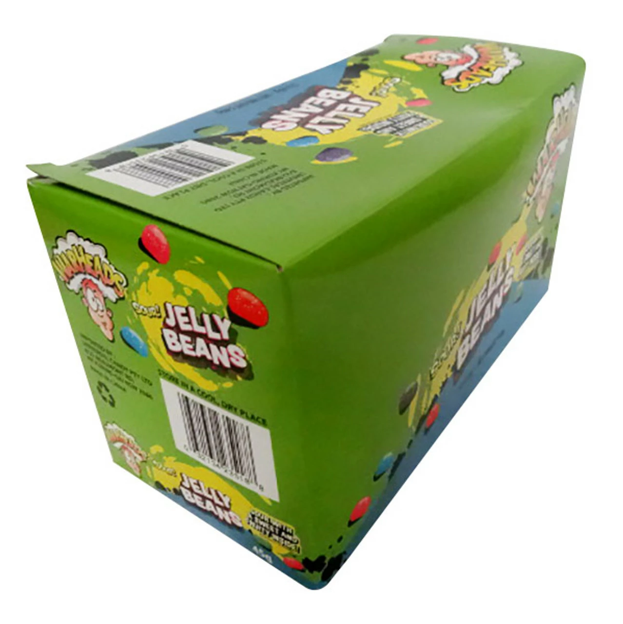 Warheads Sour Jelly Beans. Sour on the outside, sweet and fruity inside. Chewy candy. 12 x 45g box.