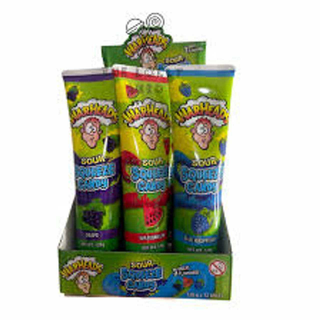 Warheads Sour Squeeze Candy 12 x 120g BOX. Sour squeeze candy in grape or watermelon or blue raspberry flavours.Â