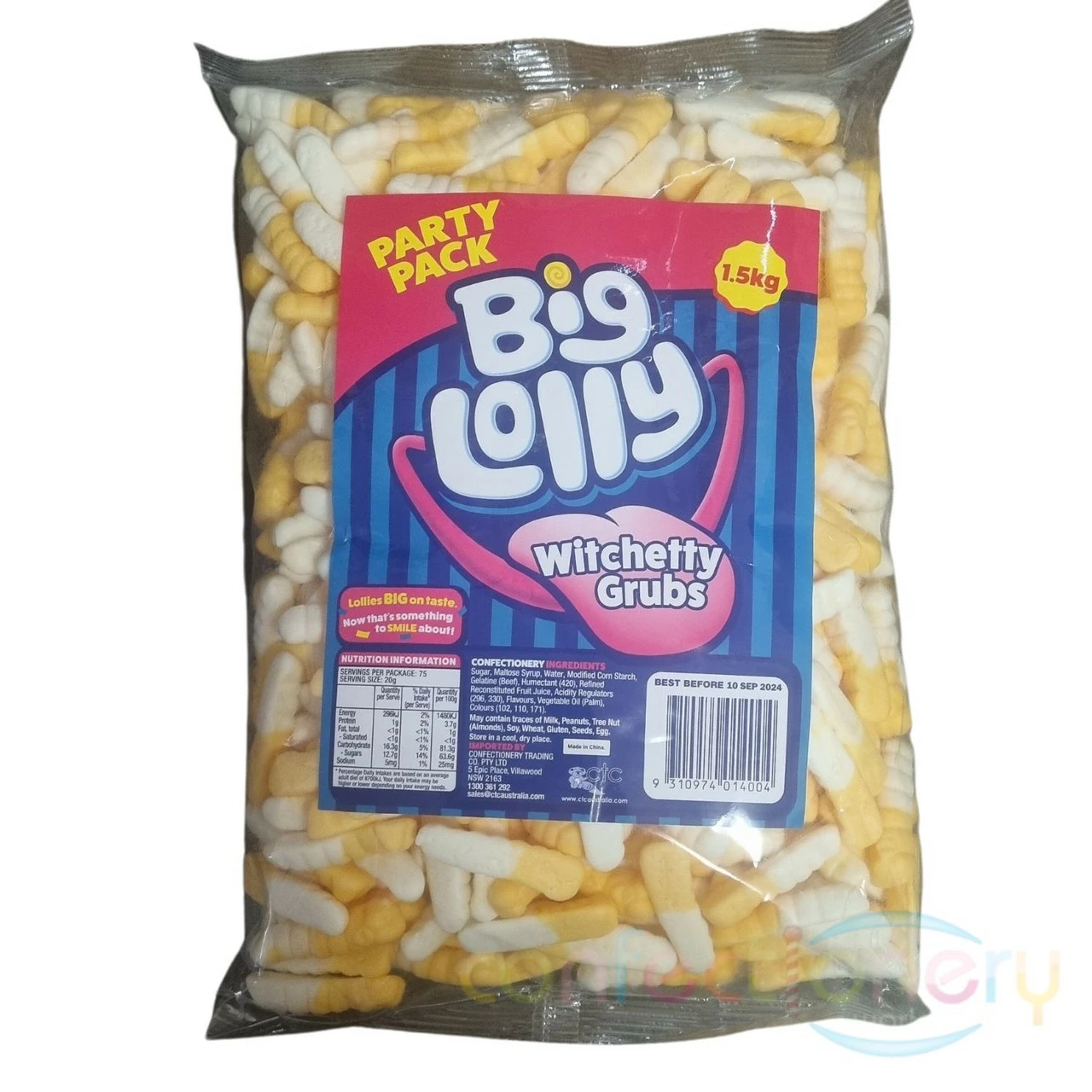 Witchettie Grubs are soft yellow and white witchety grub lollies in a 1.5kg bag. Jelly like witchetty worms.