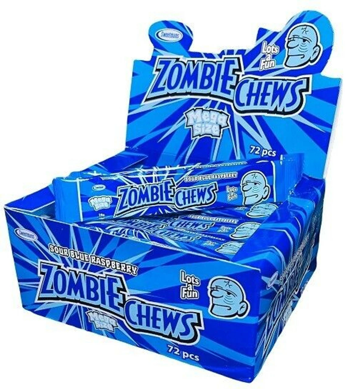 Sweetmans Zombie Chews – Sour Blue Raspberry are scary and sour. Individually wrapped. Lots of fun. 72 bars in a box.